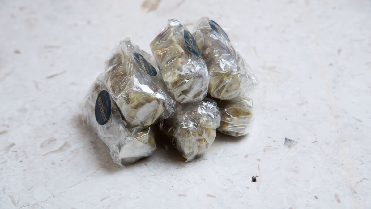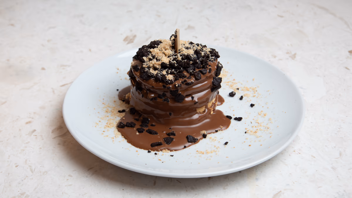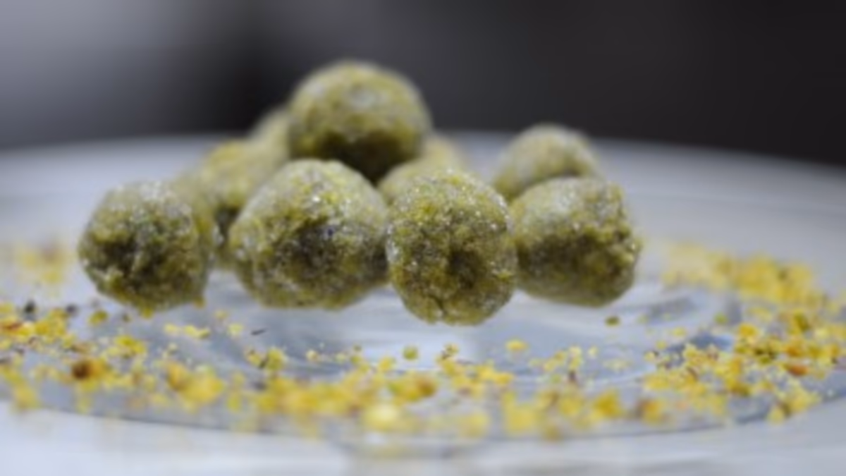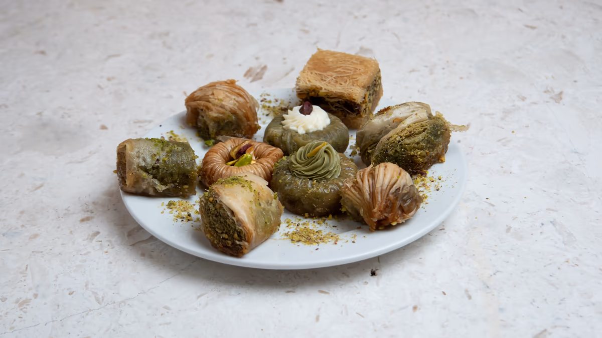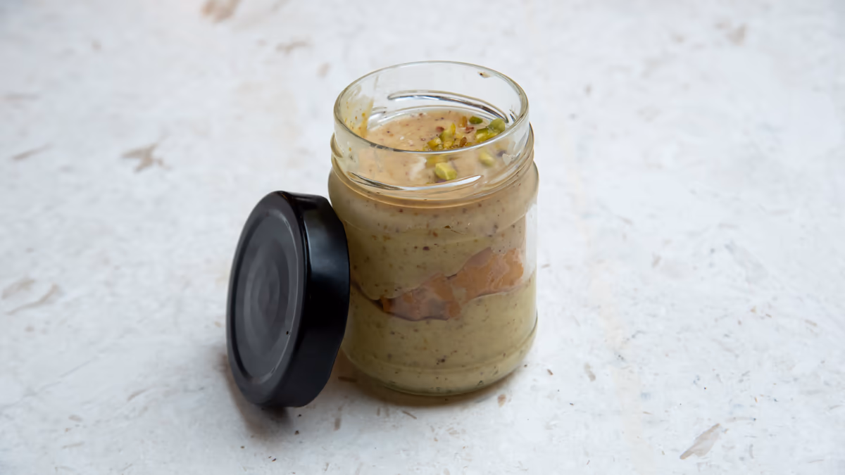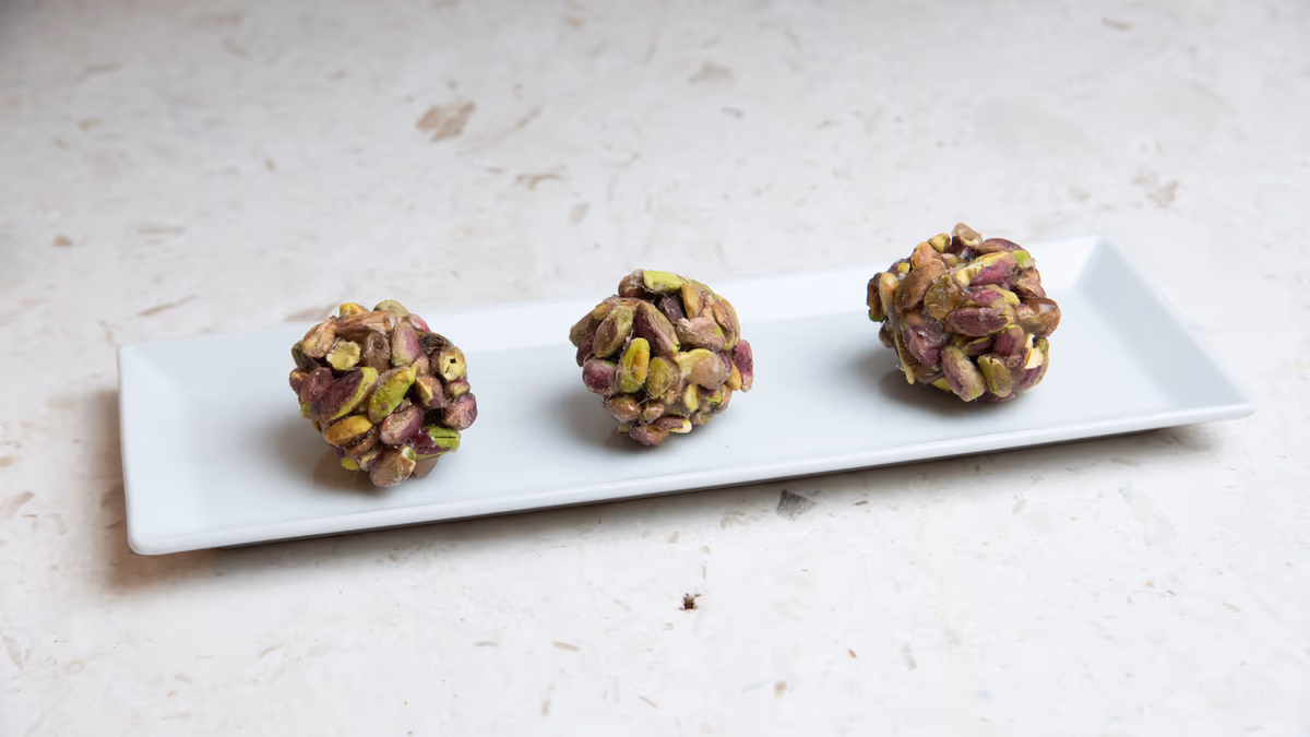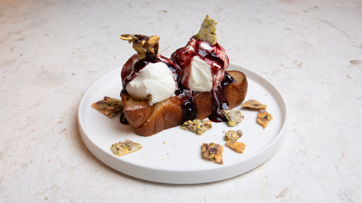 Με κρέμα φυστικιού Αιάκειον, σοκολάτα λευκή, σαντιγύ, παγωτό φυστίκι και τριμμένο φυστίκι