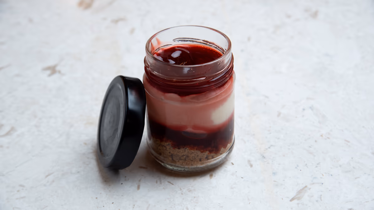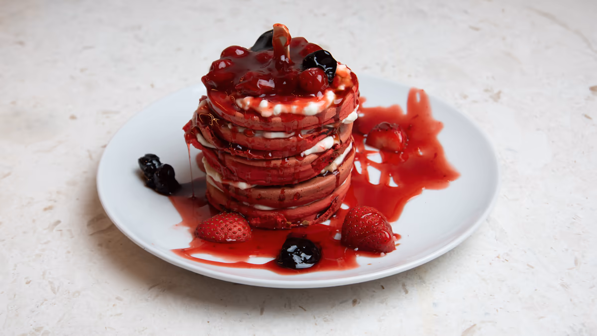 Με κρέμα cheesecake, φρούτα του δάσους, φρέσκες φράουλες και σιρόπι βύσσινο