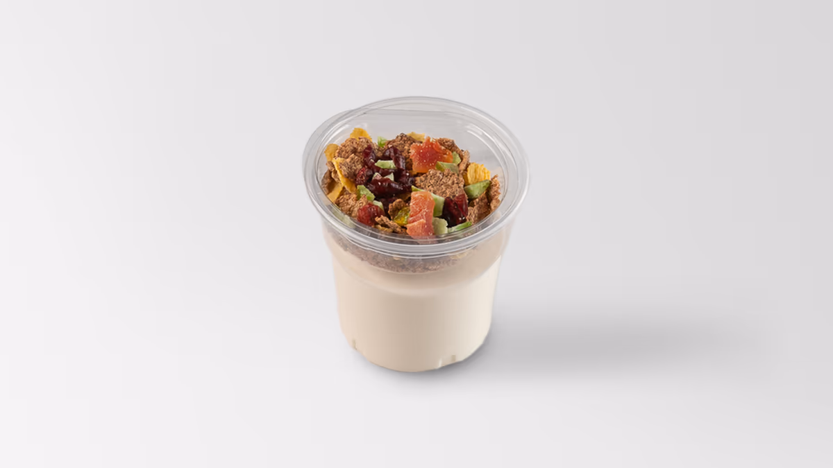 Με γιαούρτι, φρέσκα φρούτα, acai berry, φράουλα, ακτινίδιο, ηλιόσπορο και φυστίκι Αιγίνης