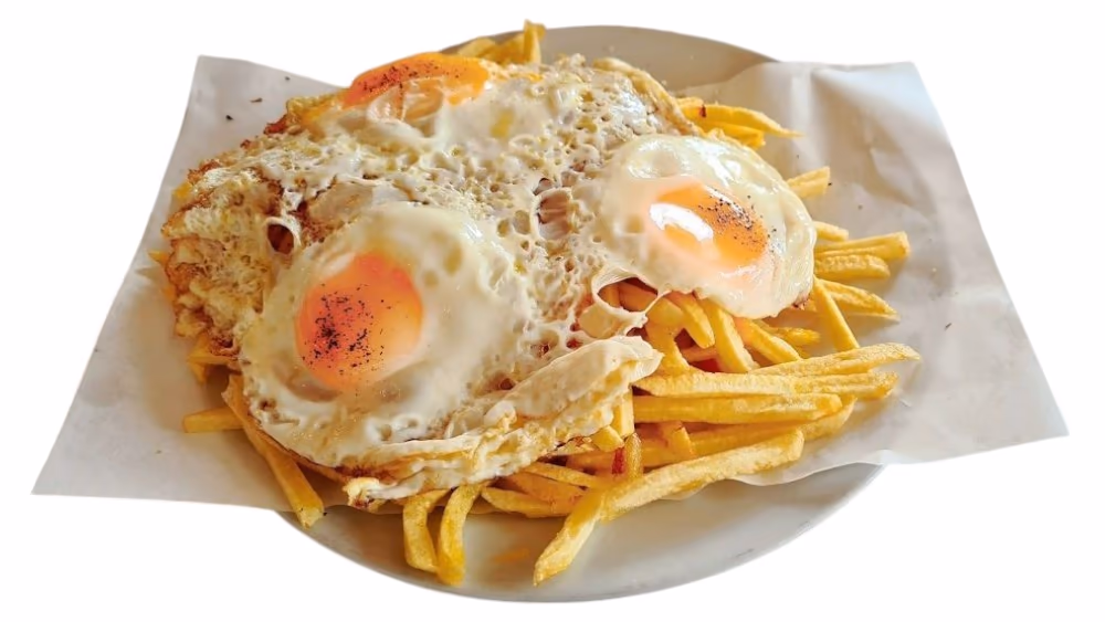 Με μπιφτέκι της επιλογής σου, gouda, ντομάτα, iceberg, καραμελωμένο κρεμμύδι, ketchup και μαγιονέζα. Συνοδεύεται από πατάτες τηγανητές