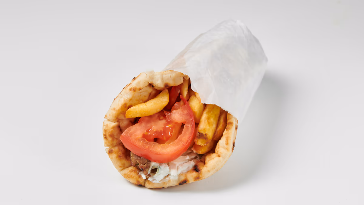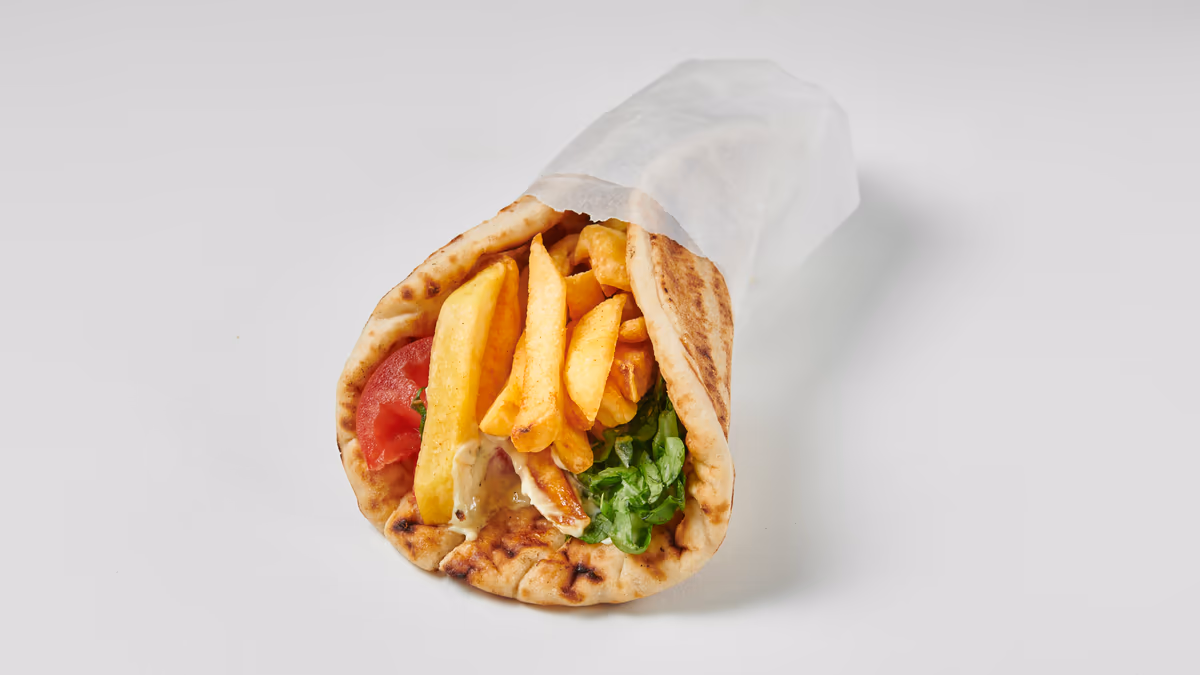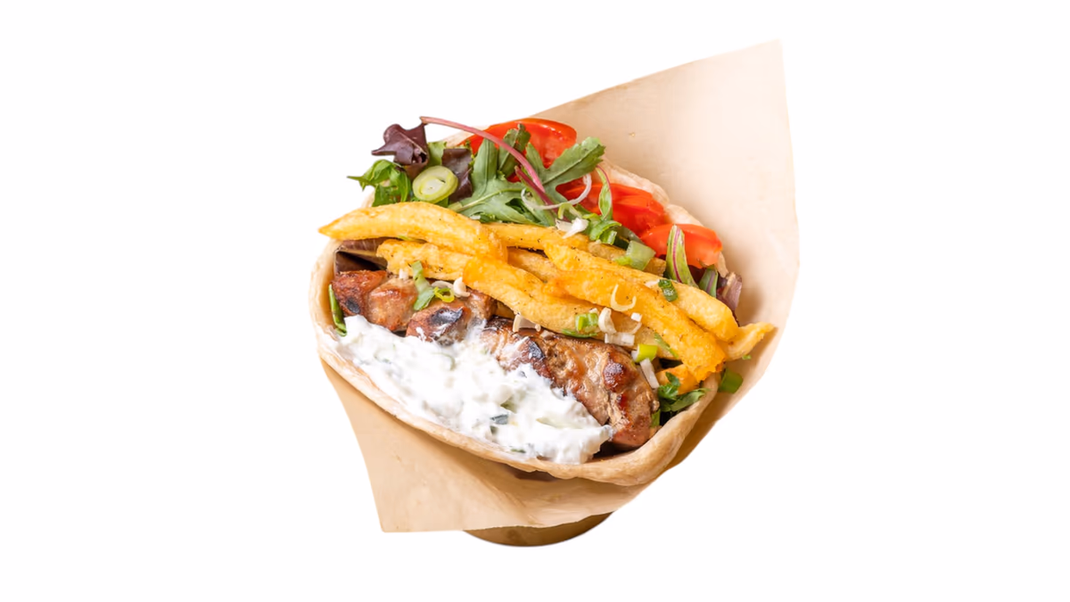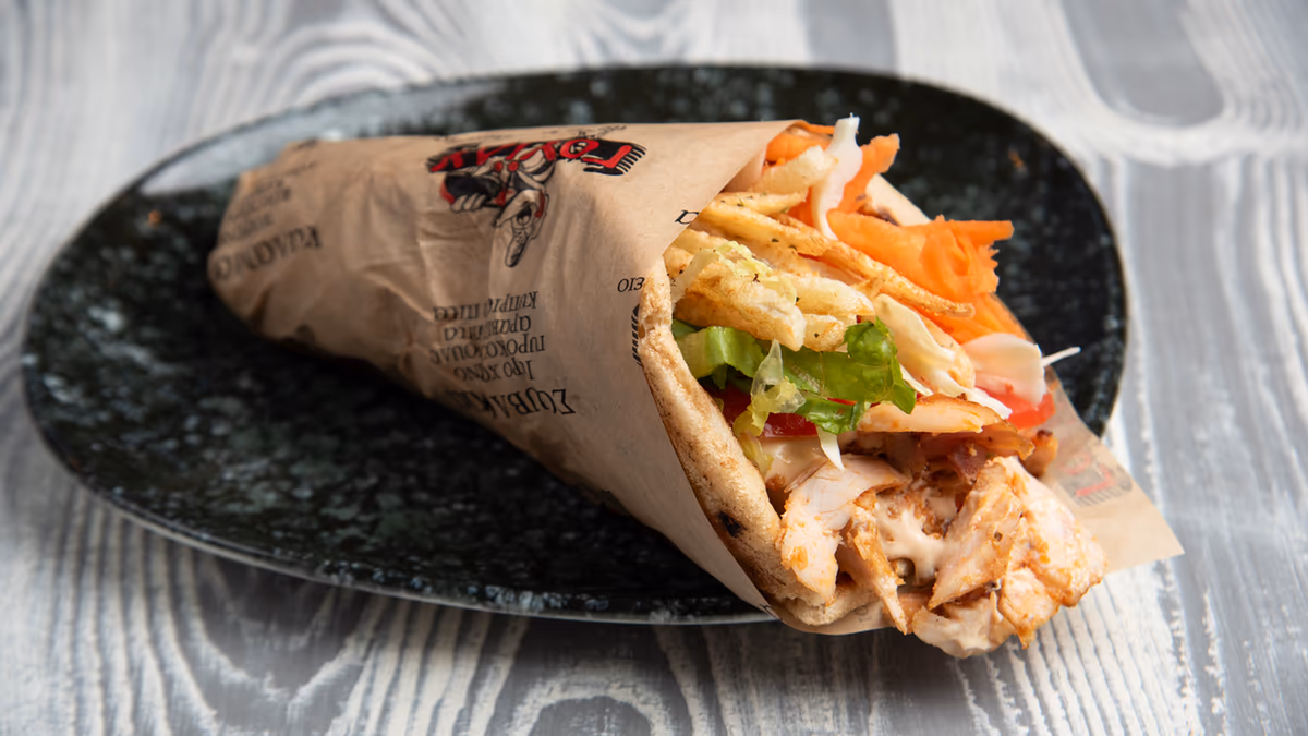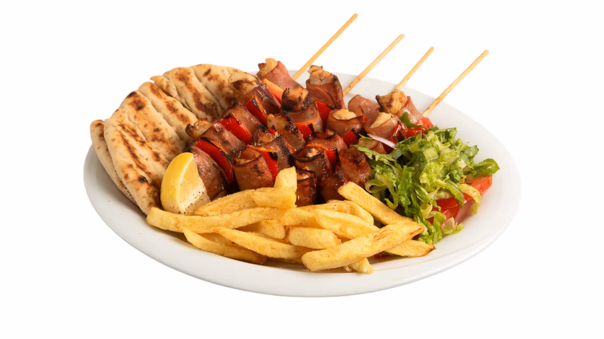 Μισό κοτόπουλο άνευ οστών. Συνοδεύεται από πίτα και πατάτες