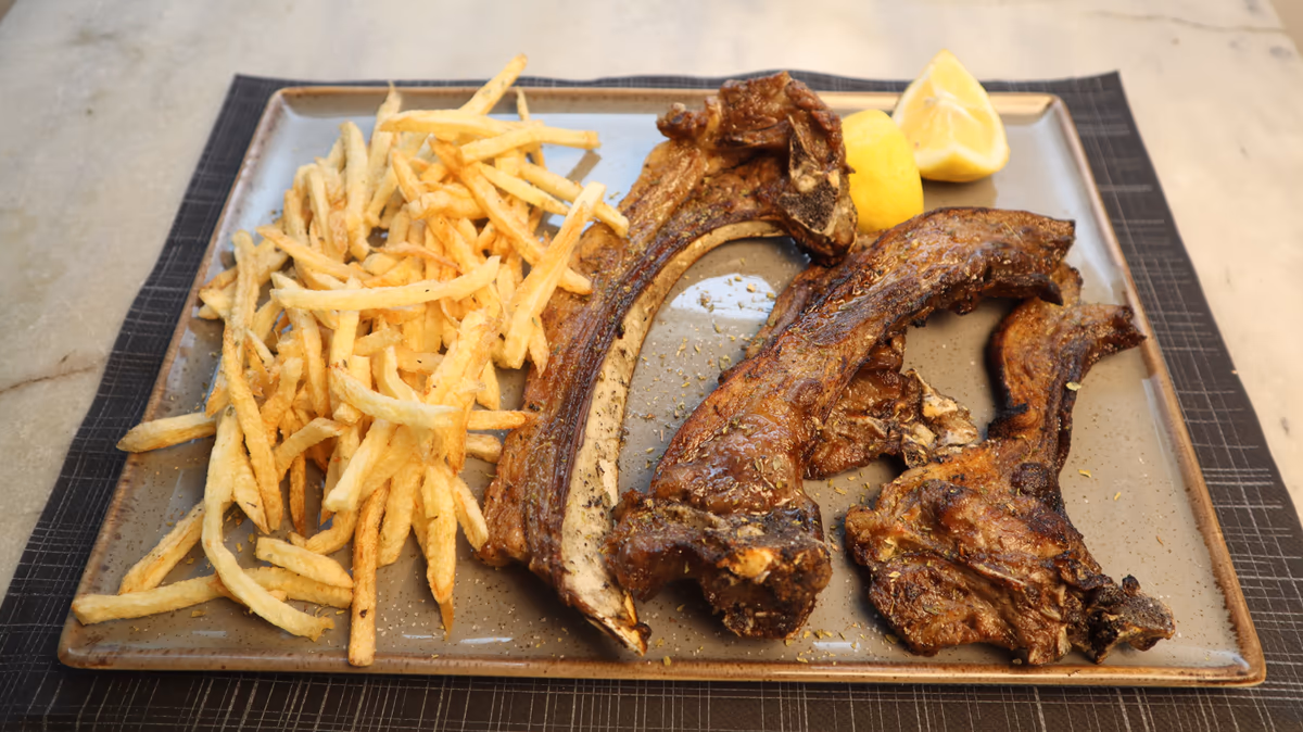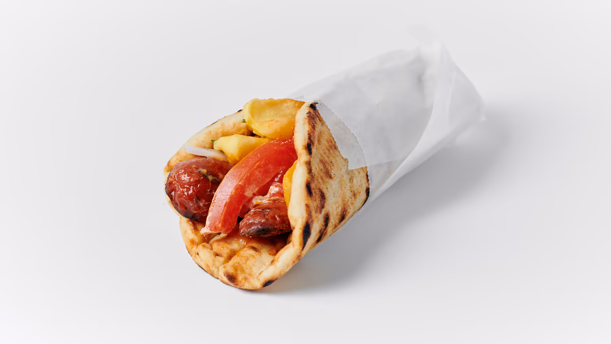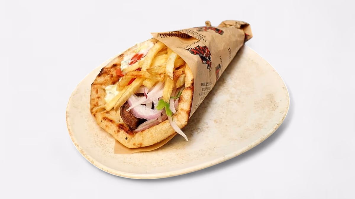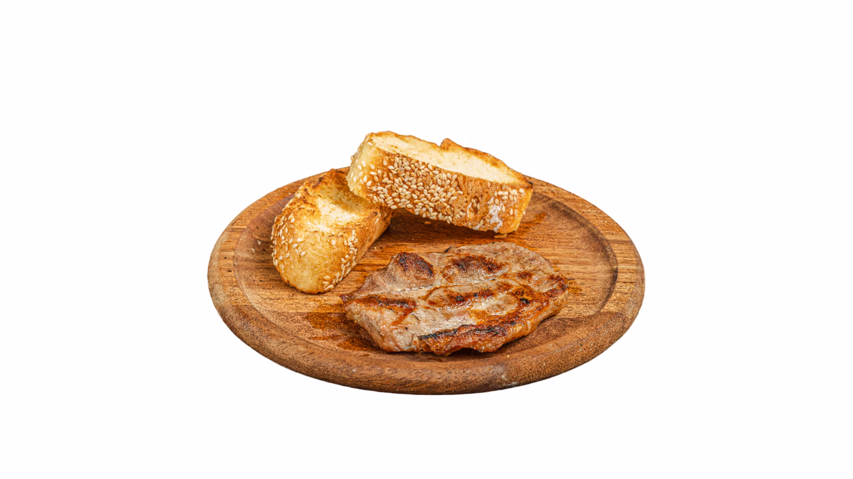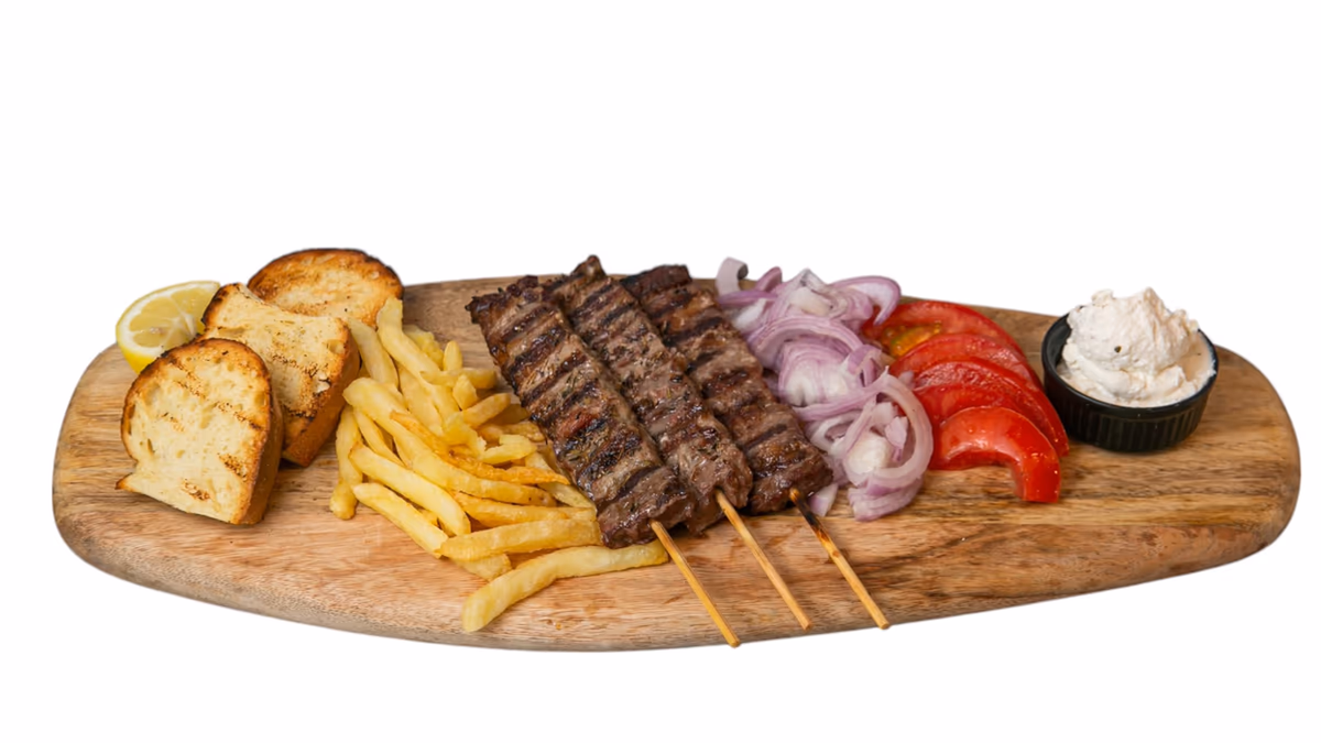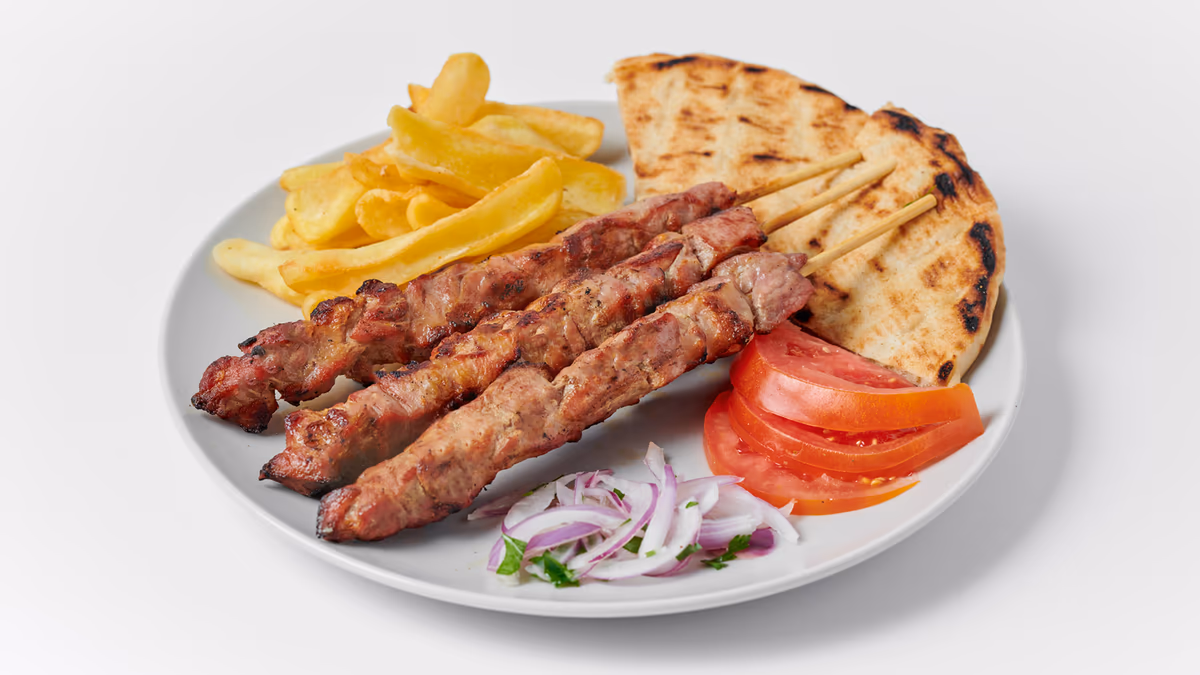 Μισό κοτόπουλο άνευ οστών. Συνοδεύεται από πίτα και πατάτες